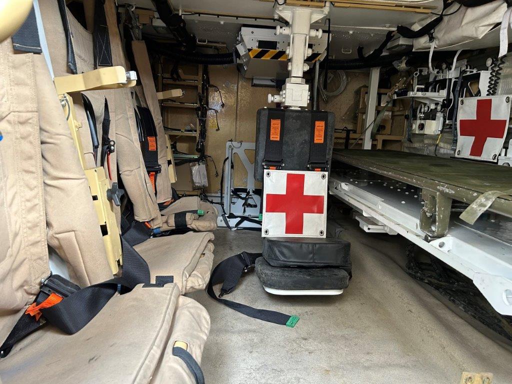 The Ambulance variant (AMB) is to transport casualties from the conflict area to the safety zone, safely and comfortably. The front cabin configuration is the same as the TCV, CV and RRV variants. The rear module has two stretcher systems that are able to hold 2 lying casualties. The primary stretcher system is permanently configured. The secondary stretcher system is able to fold behind the two seats when not in use, allowing 3 seated casualties to transported inside the module.